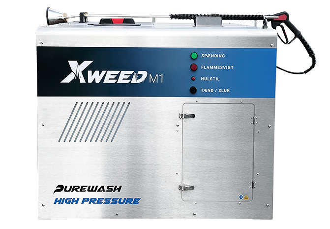 Vandet varmes op til ca. 98°C og sprøjtes over ukrudtet. Efter få minutter begynder ukrudtet at visne. Energien i det varme vand ødelægger ukrudtsplantens cellestruktur. Al grøn vækst over jorden dør efter hver behandling. Purewash XWeed systemet sikrer en miljøvenlig bekæmpelse af ukrudt.Med XWeed M1 kan man fjerne ukrudt kun med varmt vand! Behandlingen holder 2–3 gange længere end konventionelle metoder. Purewash XWeed er væsentlig mere effektiv end bl.a. dampbehandling der er mere følsomt overfor vejrforhold. XWeed kan bruges hele året rundt i al slags vejr.